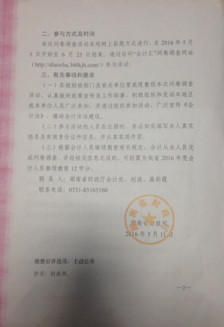 湖南省财政厅关于开展《会计法》问卷调查活动的通知