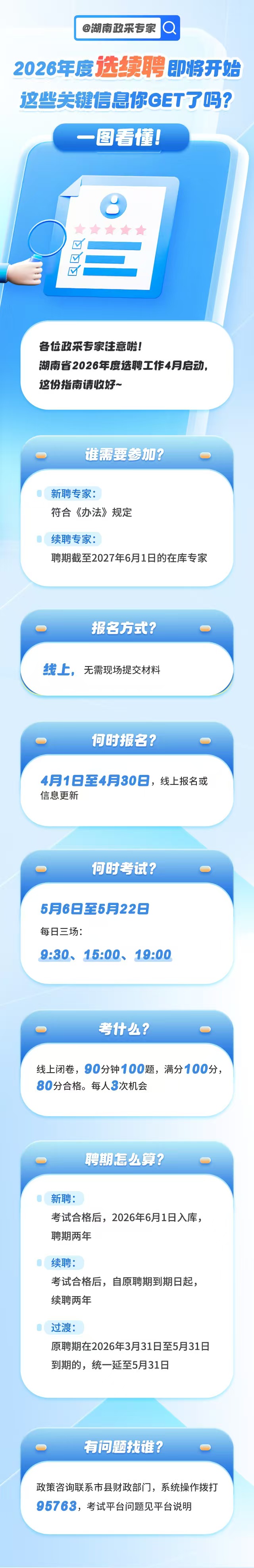 湖南省财政厅关于2026年度政府采购评审专家选续聘的公告