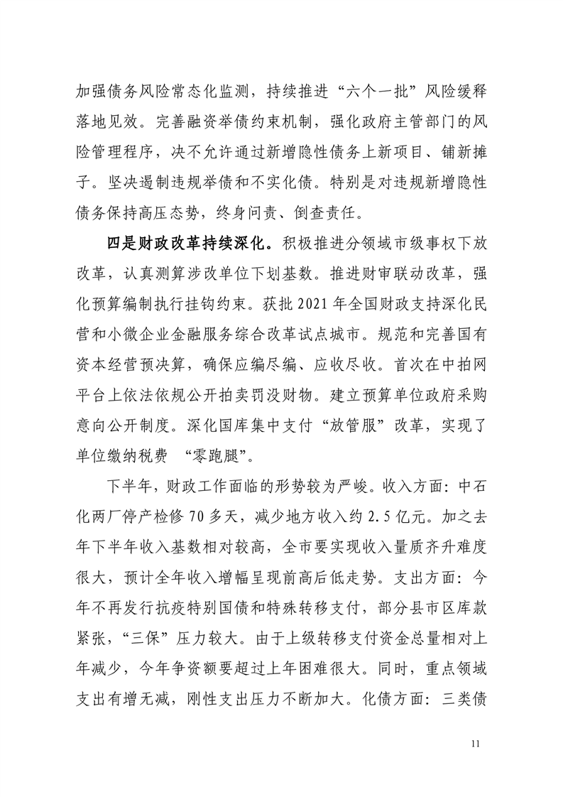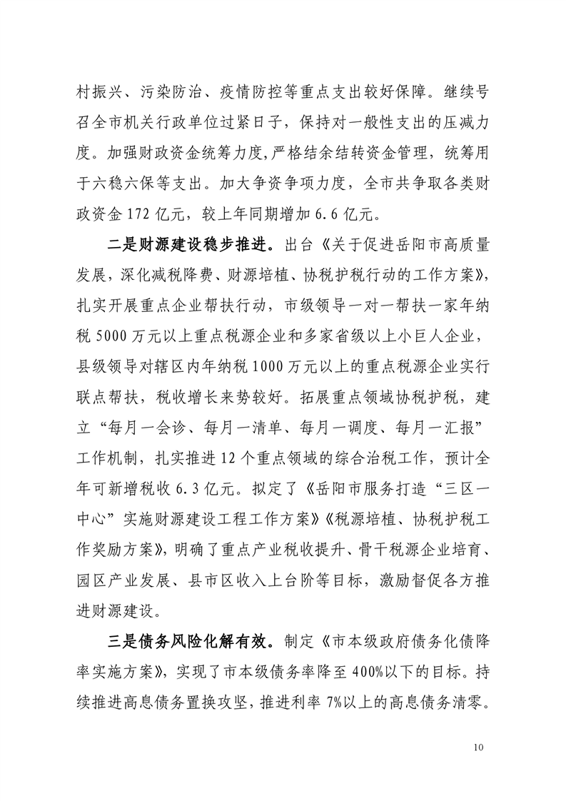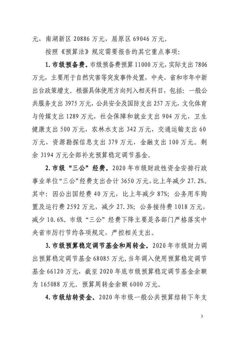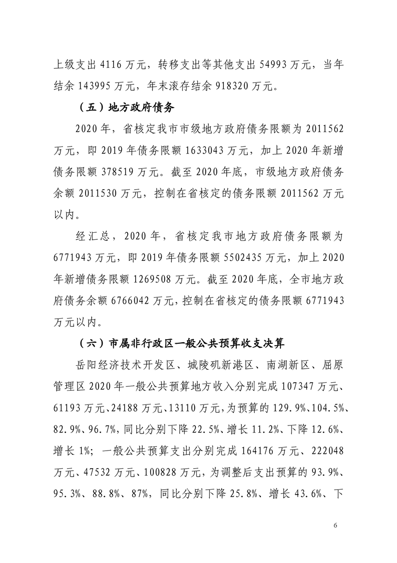 关于岳阳市2020年财政决算草案和2021年上半年预算执行情况的报告