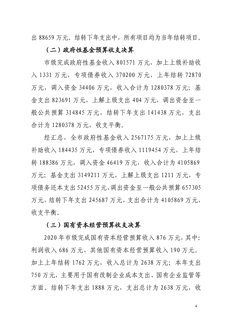 一、2020年全市和市级财政决算情况