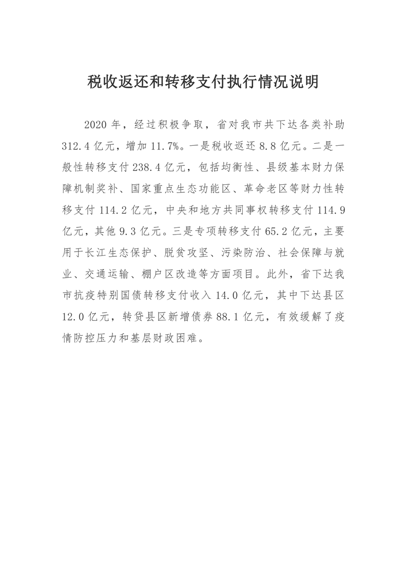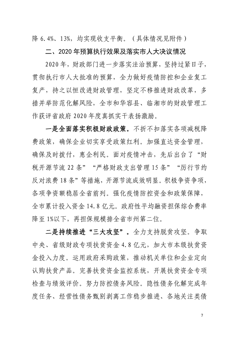 二、2020年预算执行效果及落实市人大决议情况