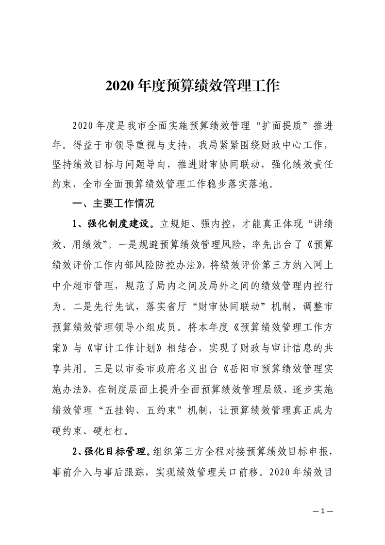 第三部分:预算绩效管理工作情况及重大政策和重点项目绩效执行结果