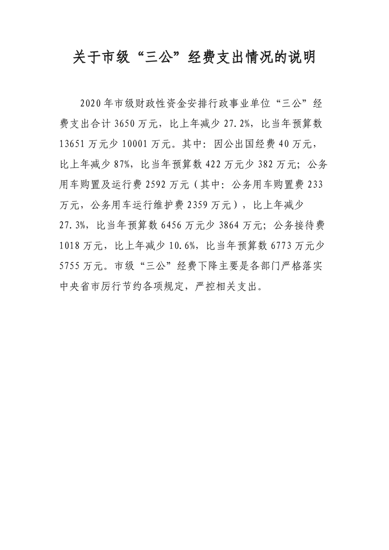 3、按照《预算法》规定需要报告的其它重点事项(含市级汇总“三公”经费决算情况、预备费使用情况等)