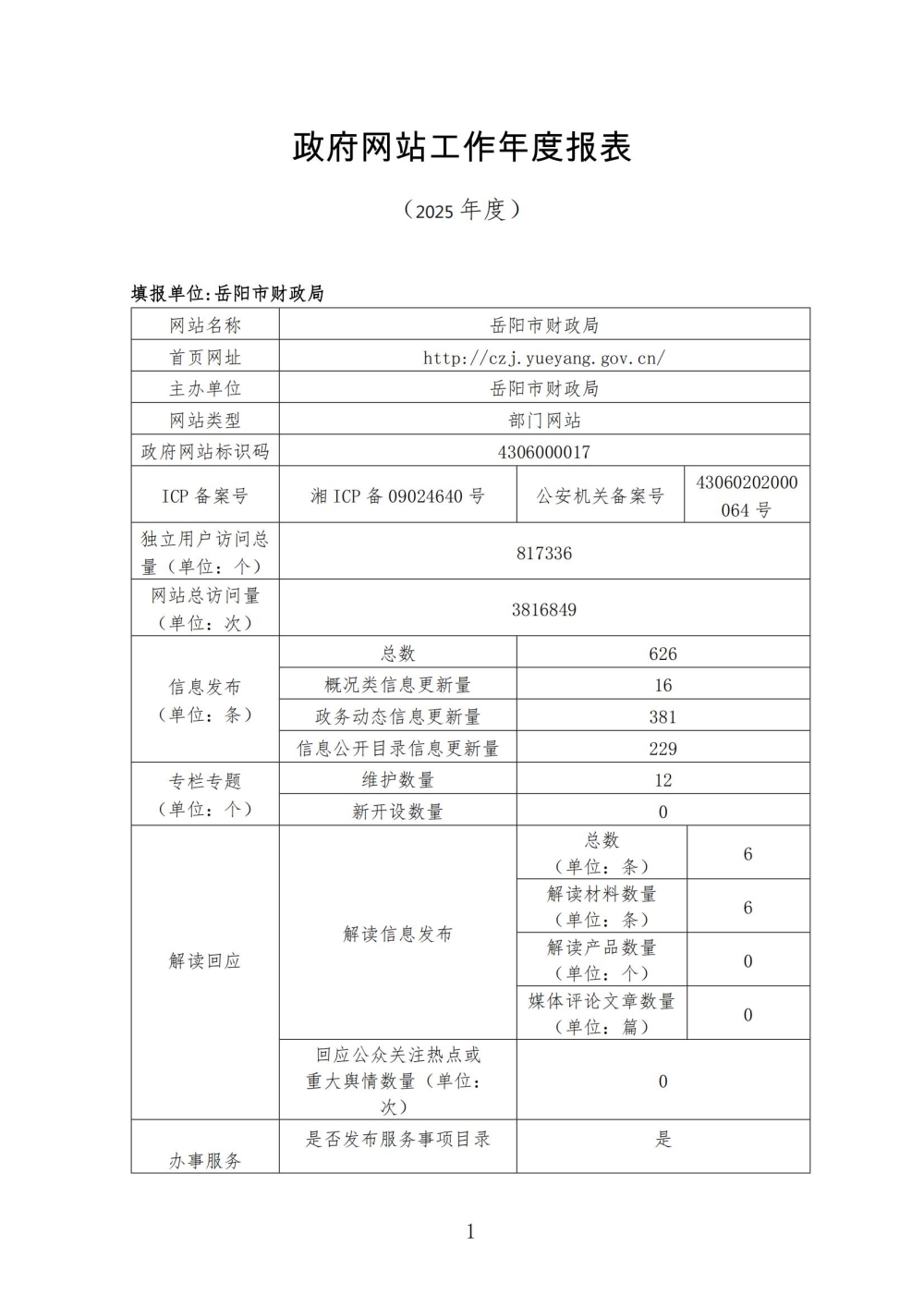 岳阳市财政局政府网站工作年度报表(2025年度)