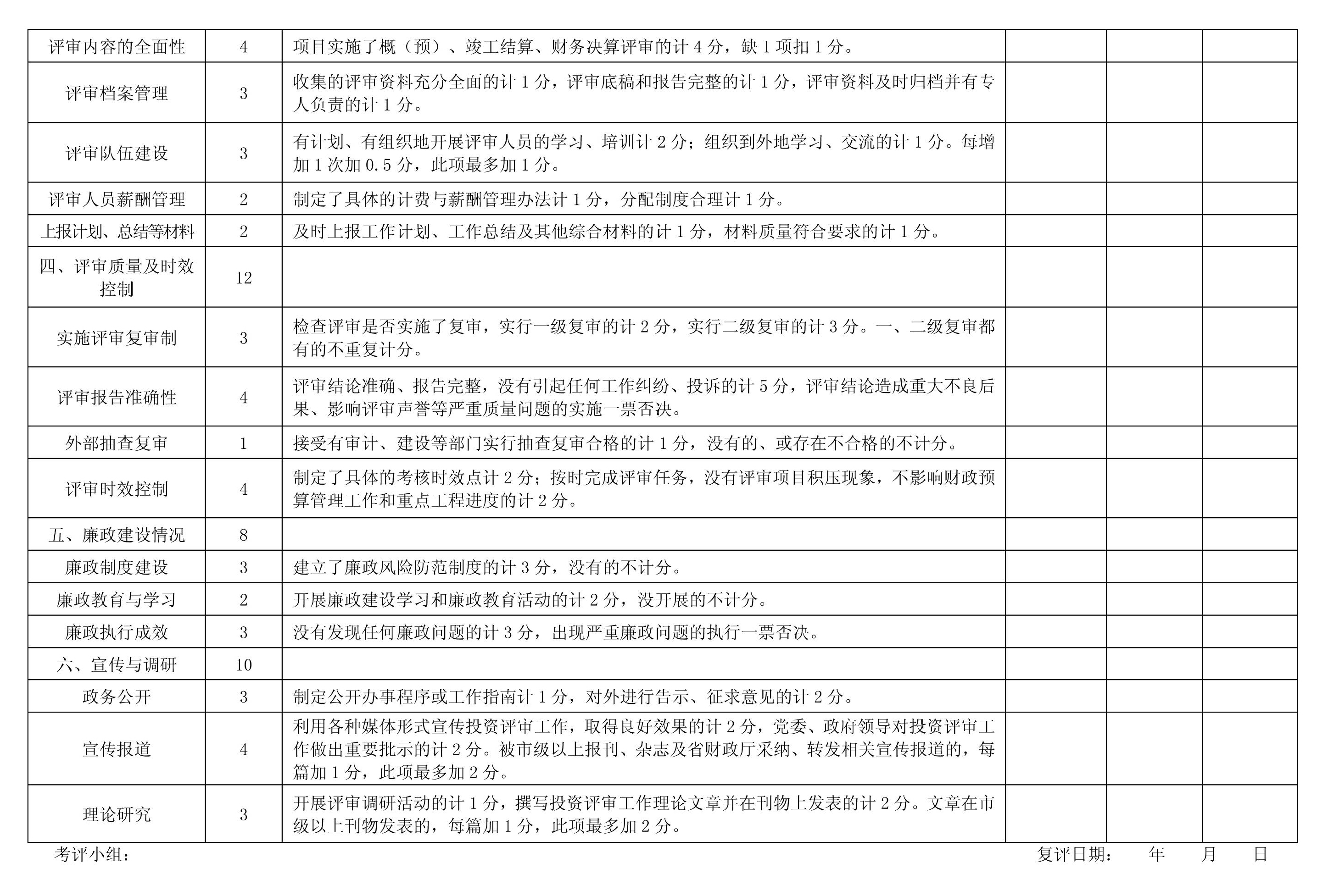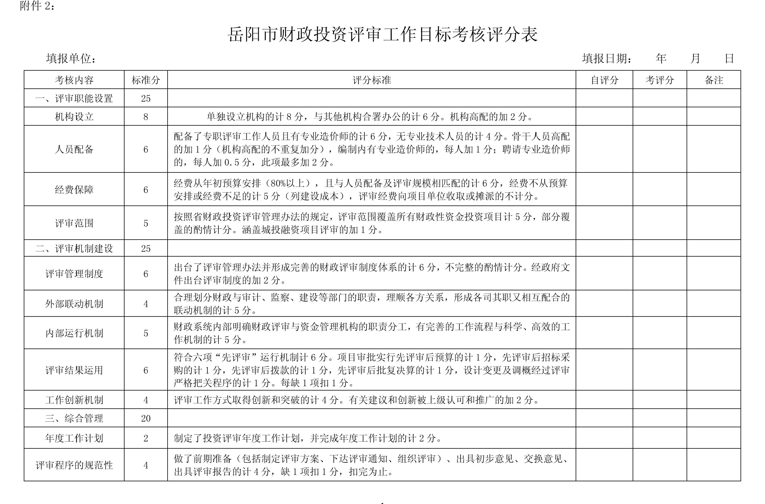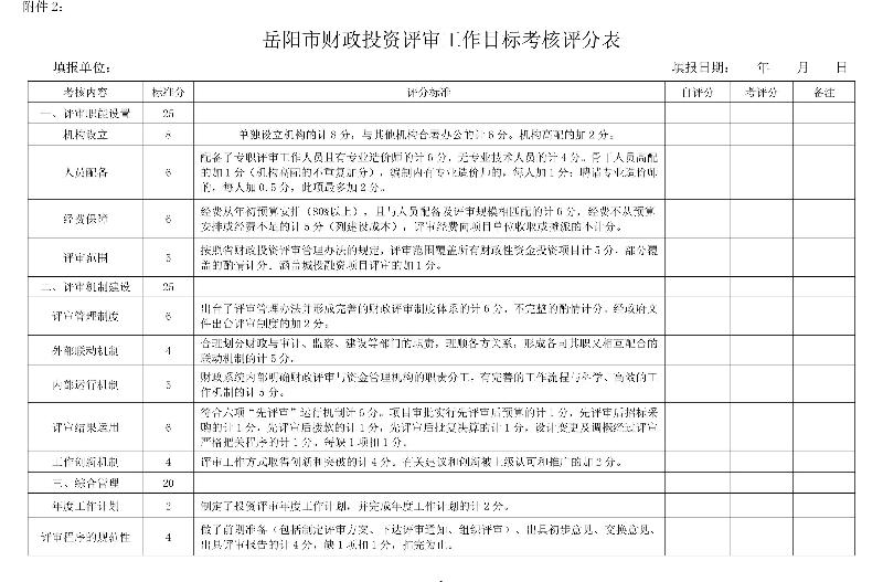 2.岳阳市财政投资评审工作目标考核评分表