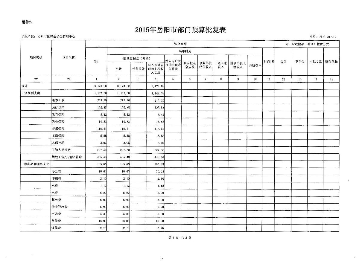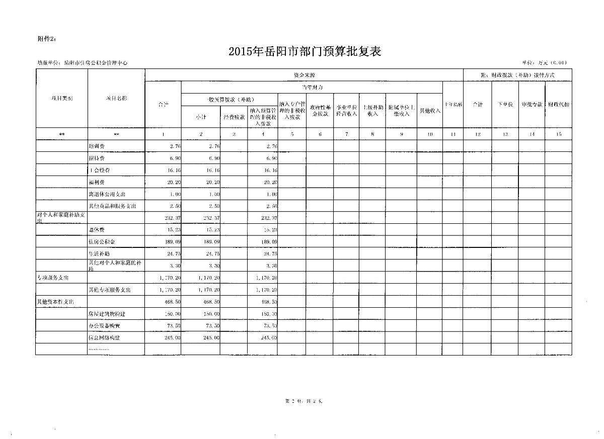 岳阳市住房公积金管理中心2015年部门预算编制公示