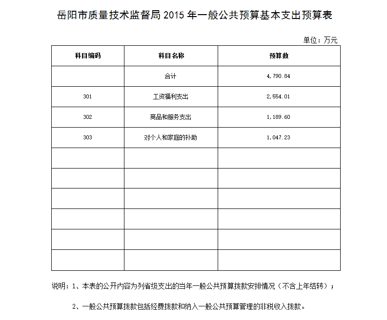 岳阳市质量技术监督局2015年一般公共预算拨款支出预算表