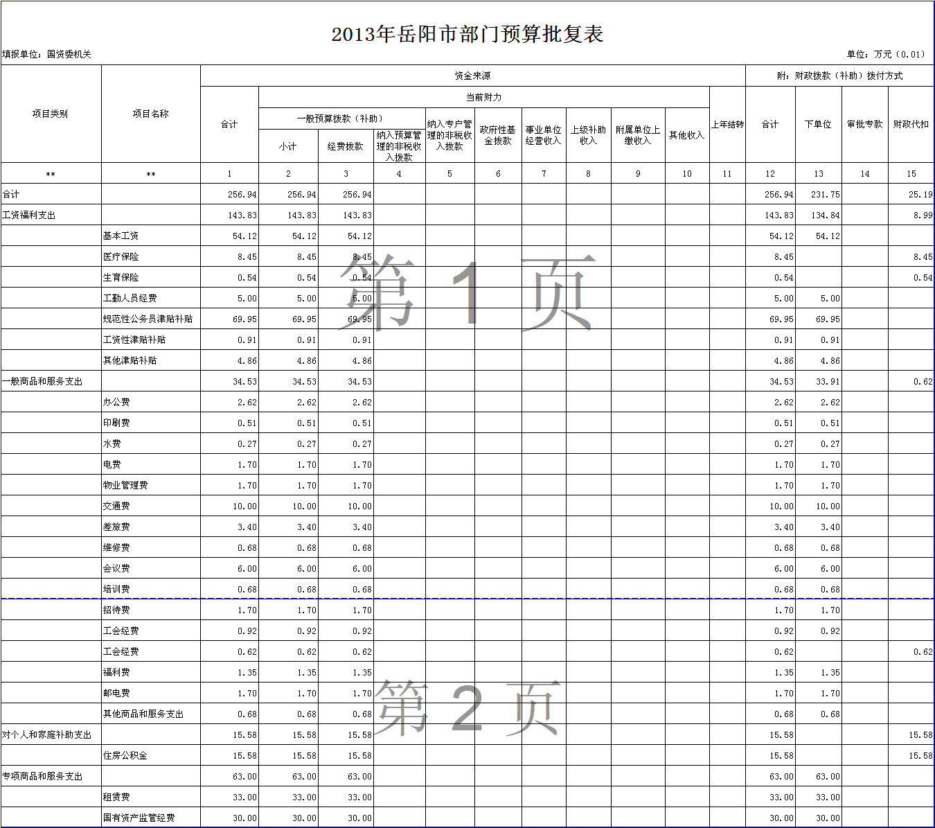 2013年岳阳市国资委部门预算批复表