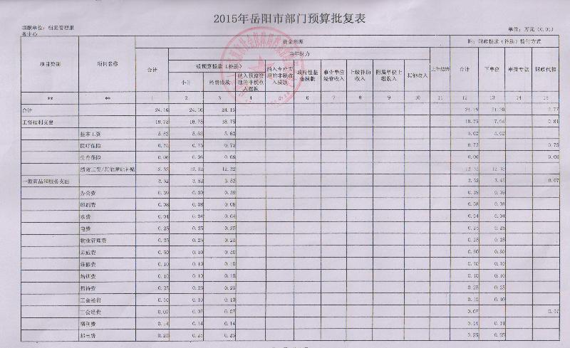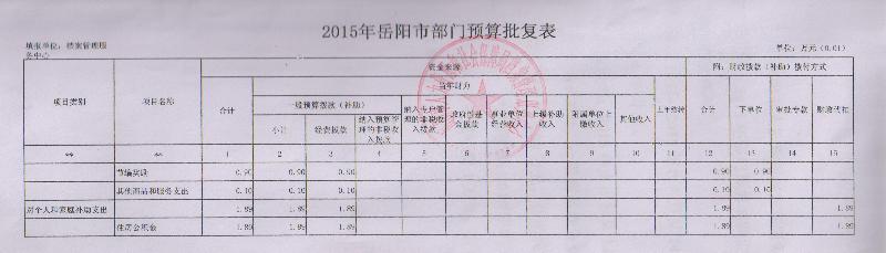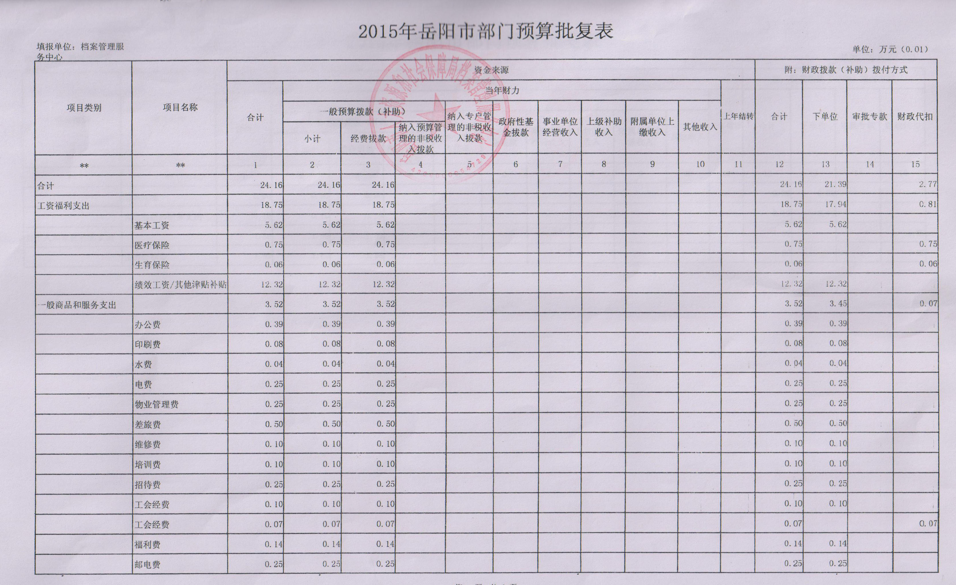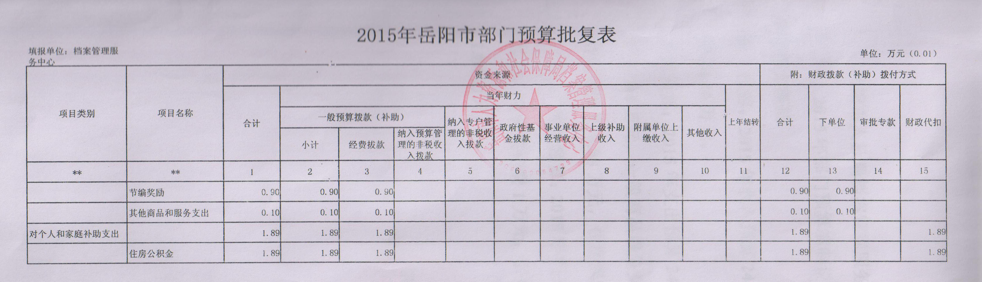 2015年岳阳市人社局档案管理服务中心预算批复表
