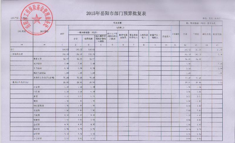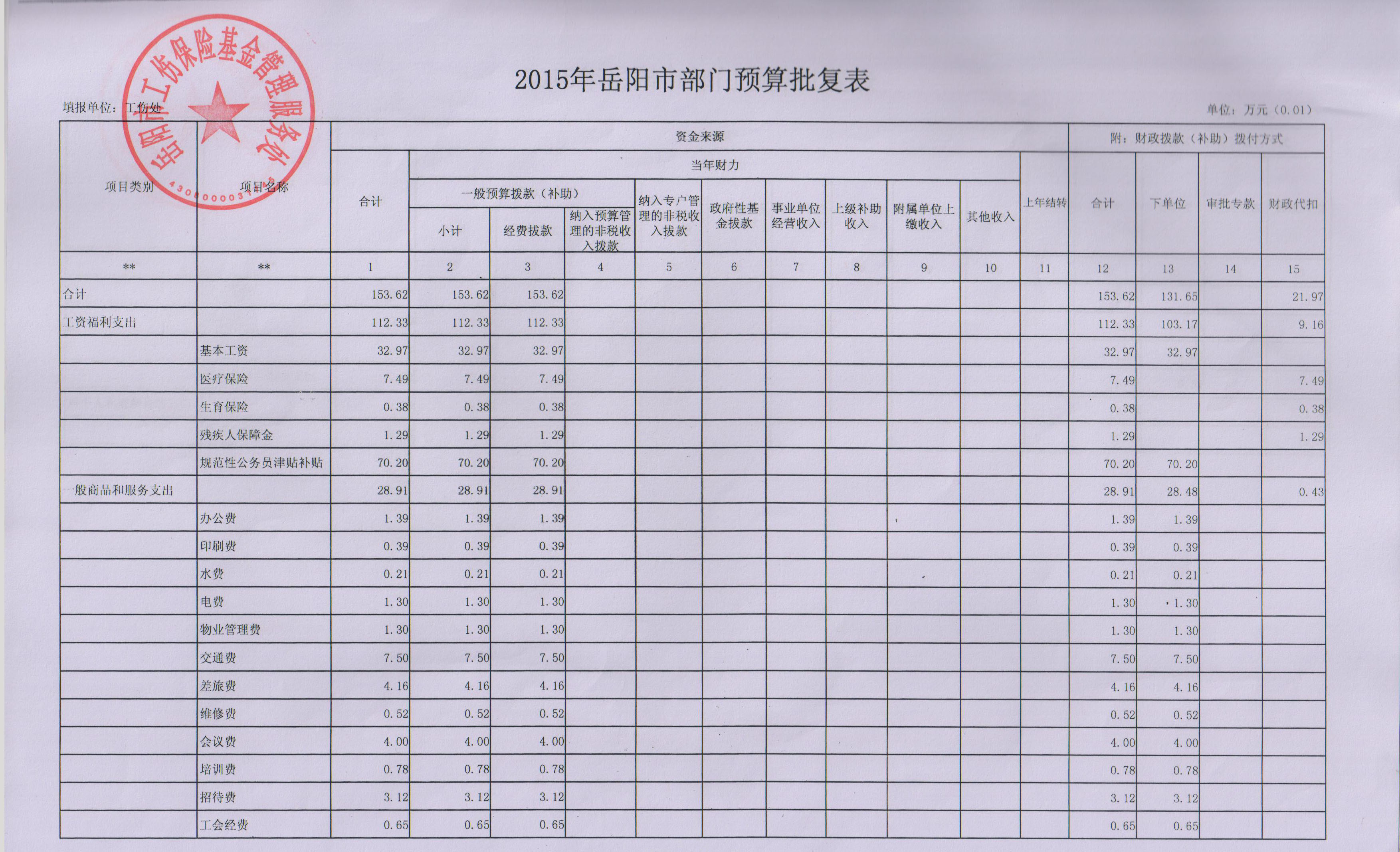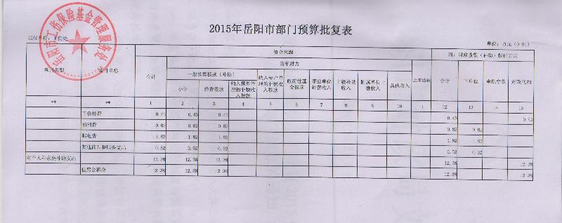 2015年岳阳市人社局工伤保险基金管理服务处预算批复表