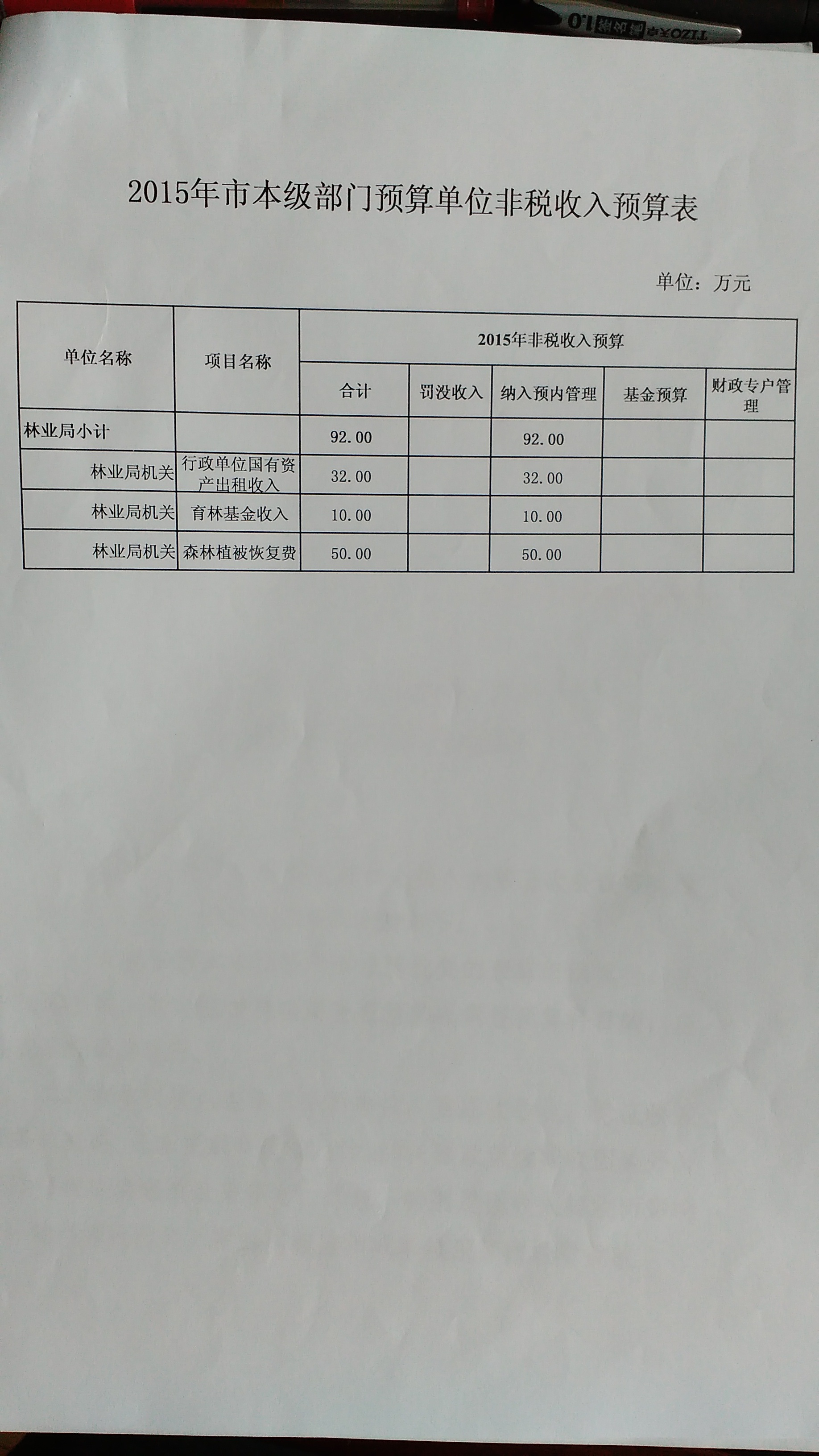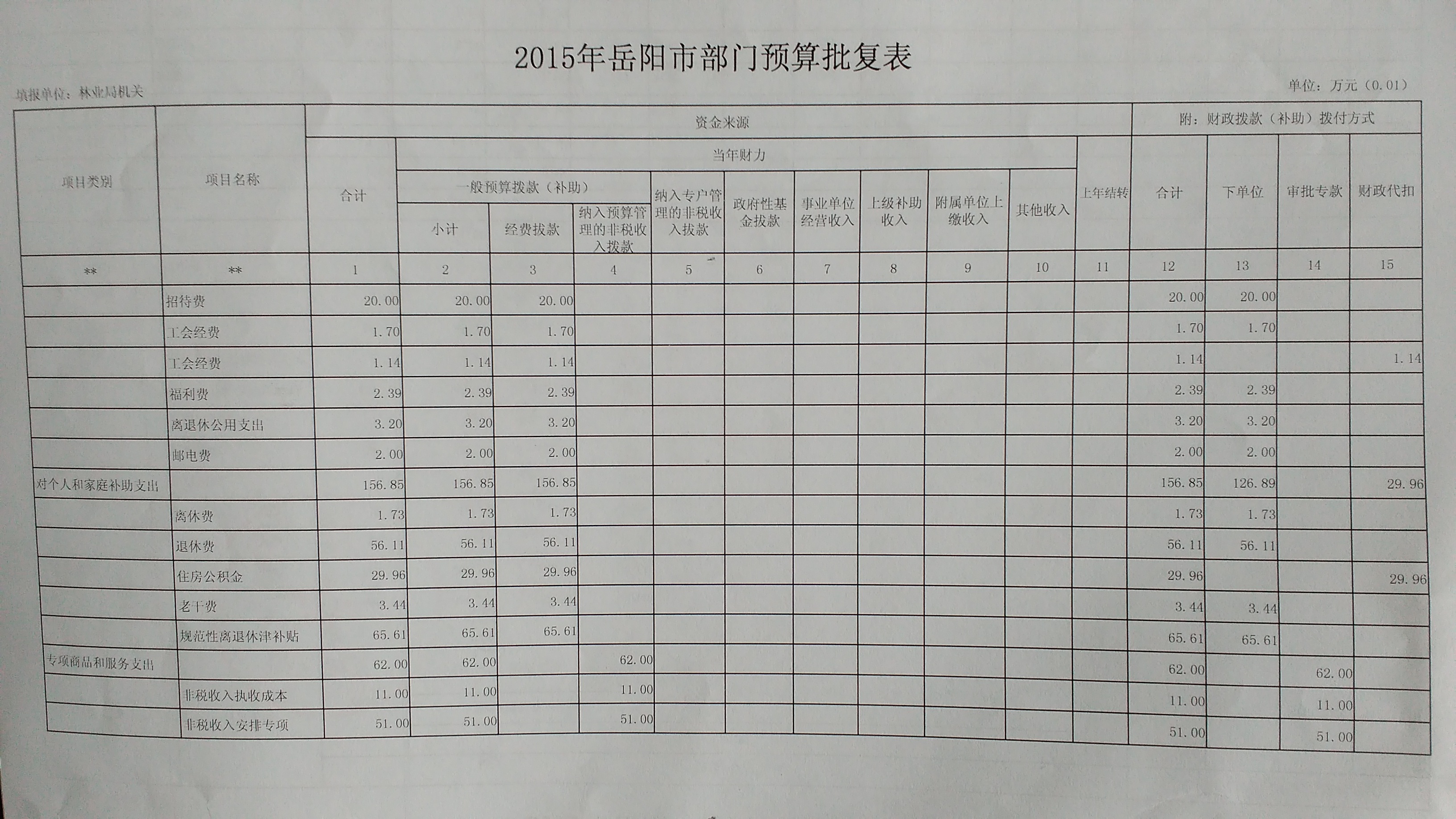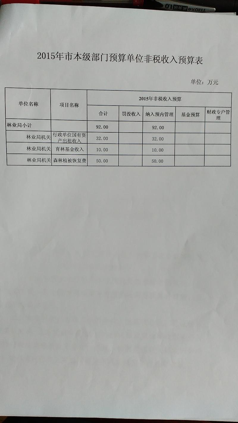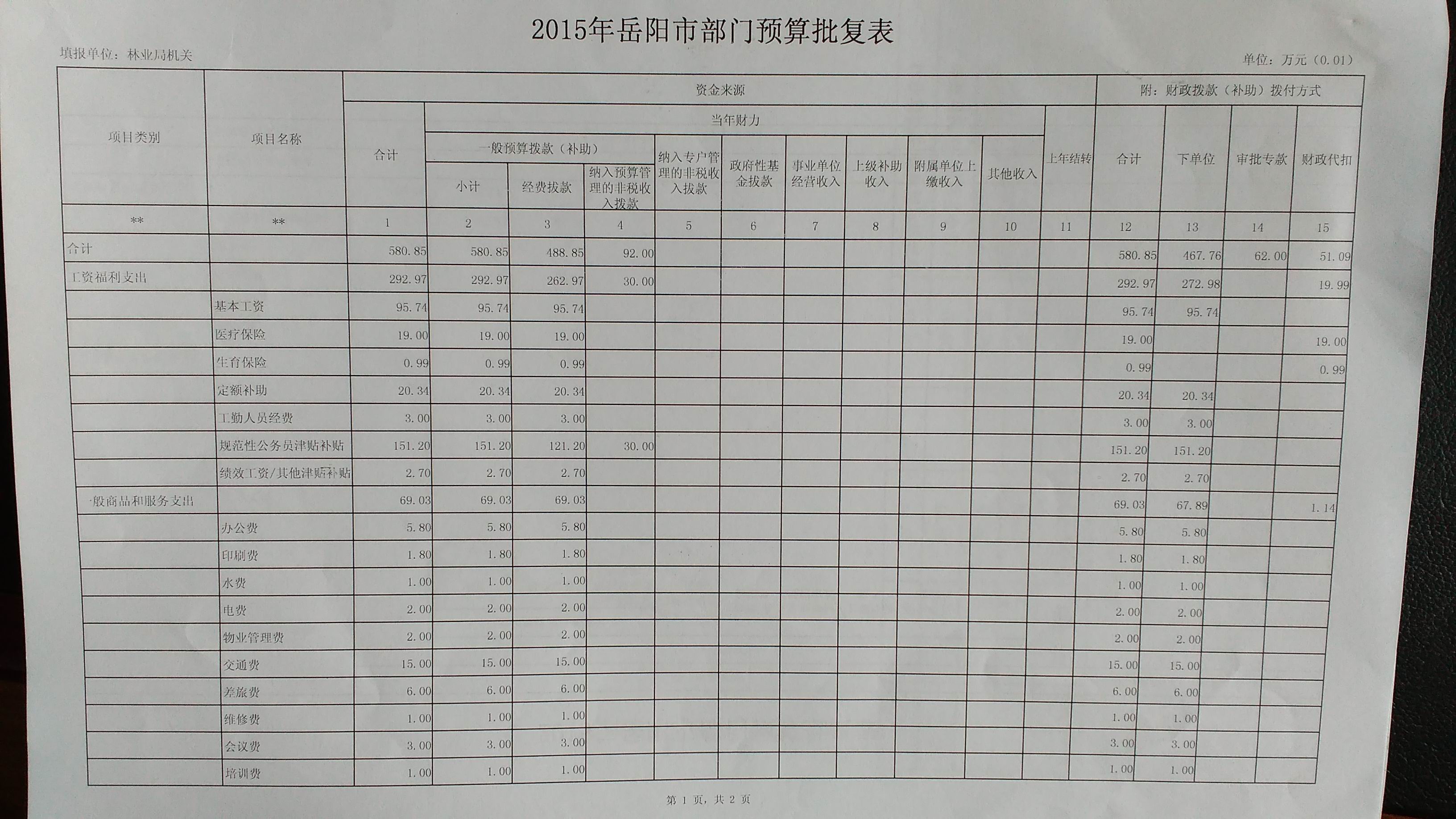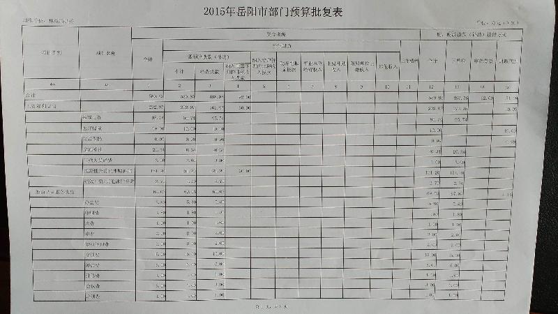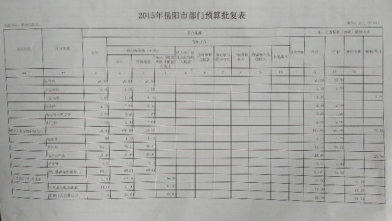 2015年岳阳市林业局预算批复表