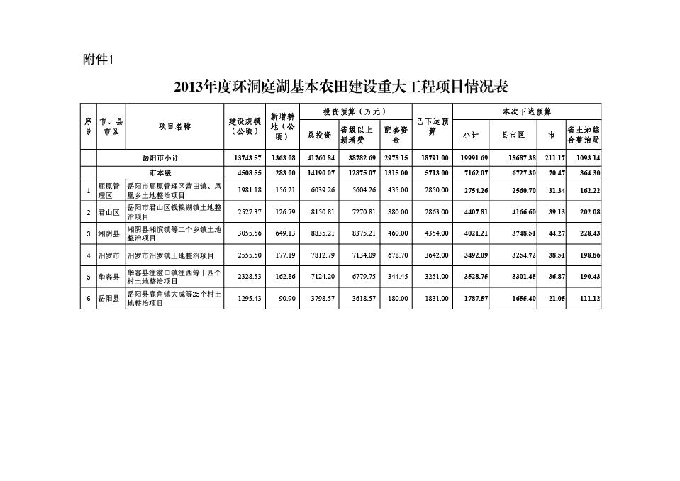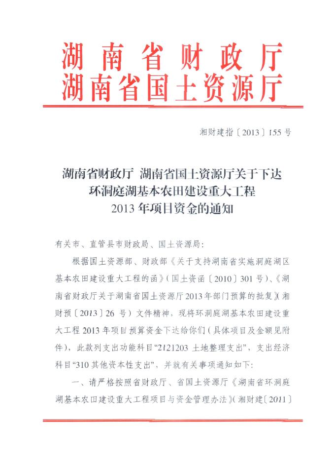 湘财建指(2013)155湖南省财政厅湖南省国土资源厅关于下达环洞庭湖基本农田建设重大工程2013年项目资金的通知(岳阳市)