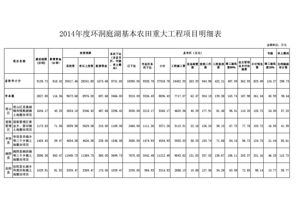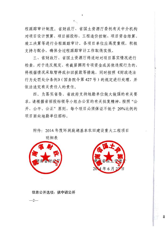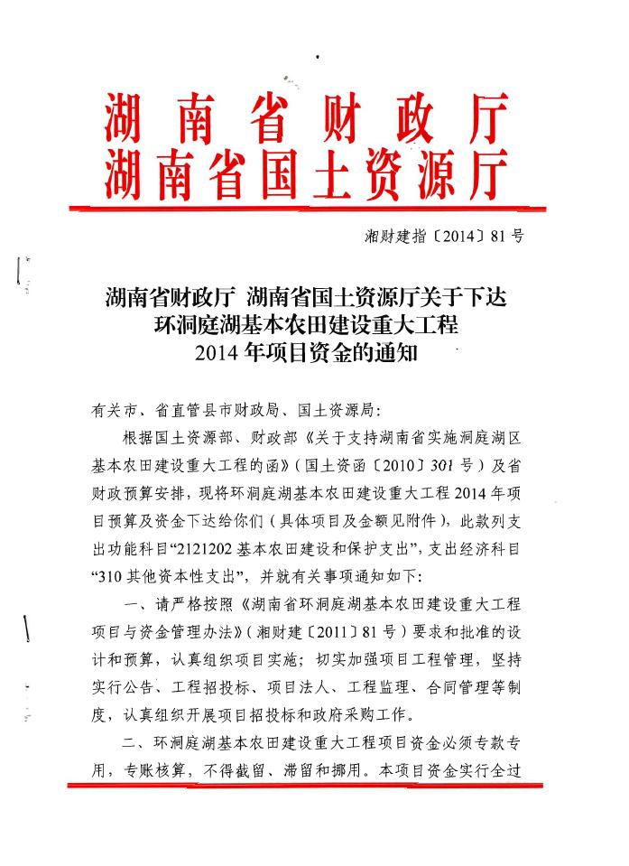 湖南省财政厅 湖南省国土资源厅关于下达环洞庭湖基本农田建设重大工程2014年项目资金的通知