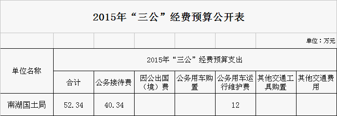 2015年度岳阳市国土资源局南湖风景区分局部门“三公”经费预算公开表