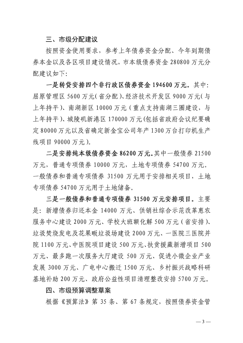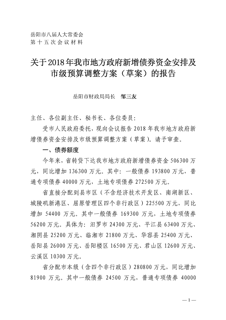 关于2018年我市地方政府新增债券资金安排及市级预算调整方案(草案)的报告
