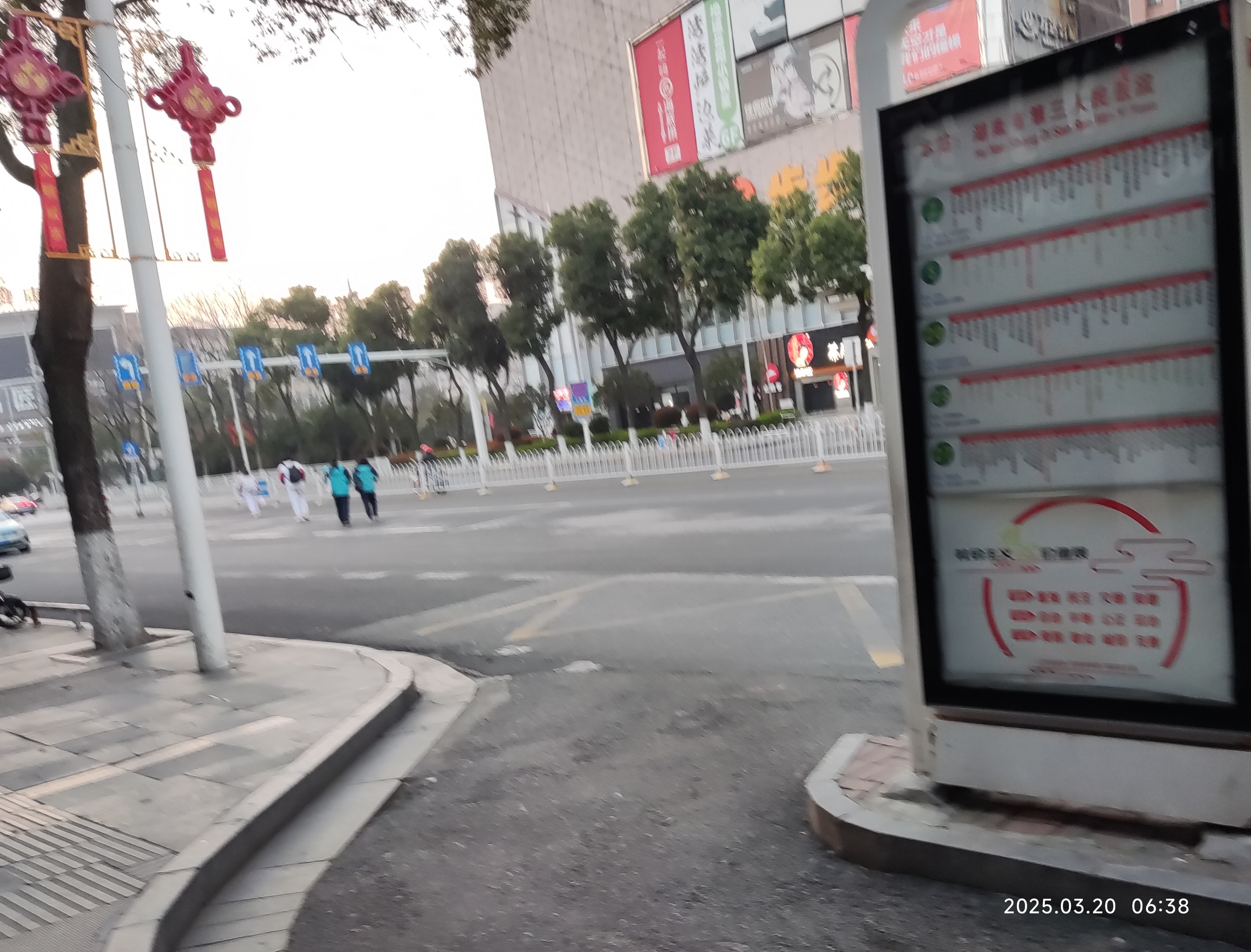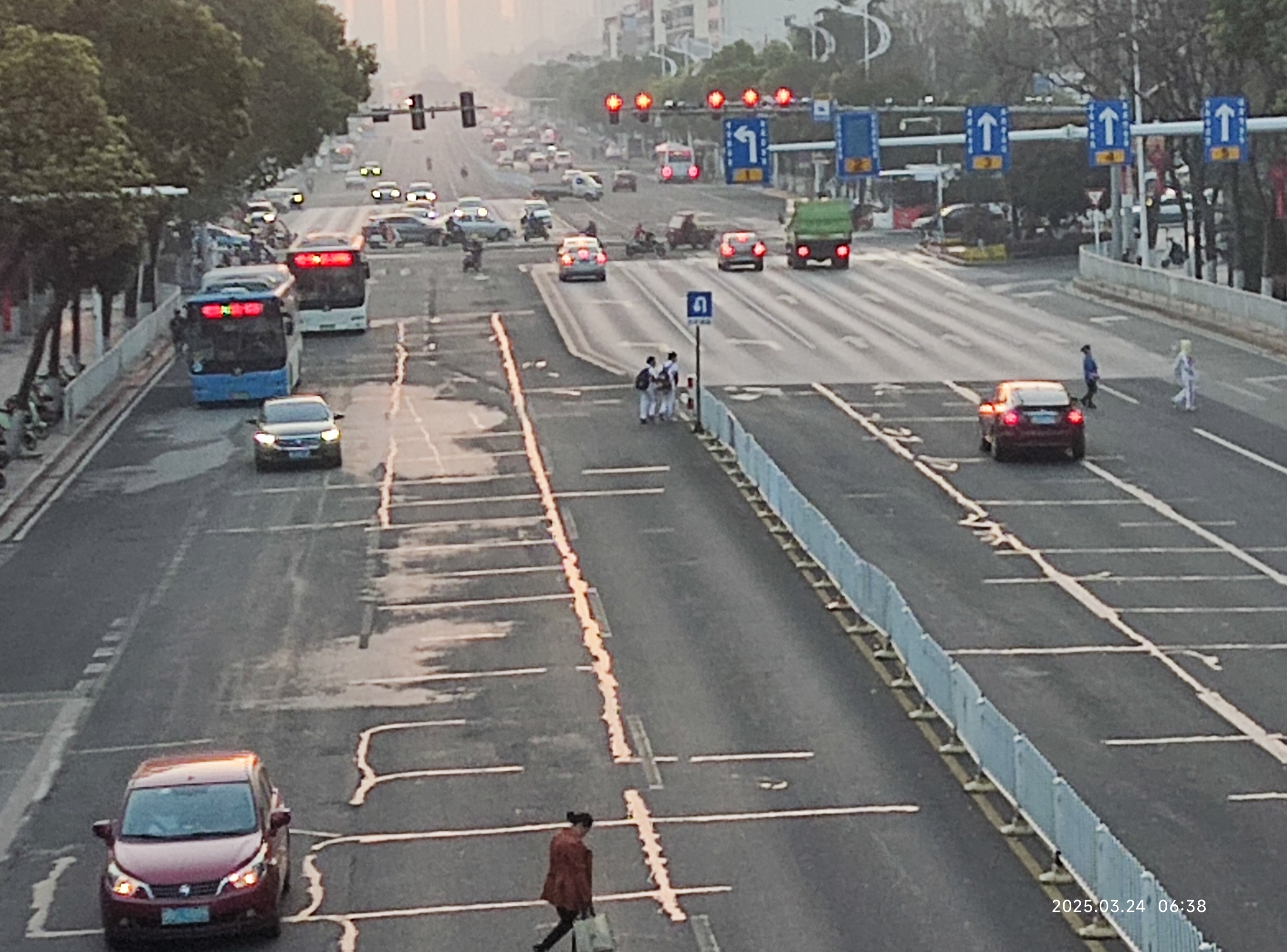 每天早上6.30左右,当第一班公交车停靠在花板桥站台后,右边离过街天桥不足50米,左边离红绿灯不足200米。后面还有无学生横跨马路目前未知。